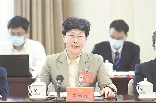 黨的二十大代表、焦作市委書記葛巧紅在河南省代表團(tuán)參加討論。