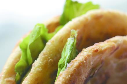 餅要趁熱吃,食客往往是一拿到餅便直接上口。薄薄的餅皮其實(shí)還分了若干層,層層起酥,一口咬下去滿(mǎn)口生香,再配著生菜的脆勁與蔥花香菜,味道極好。
