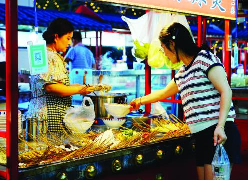 “今年5月份夜經(jīng)濟剛開始時,一晚上能收入二三百元,現(xiàn)在最多時一晚上能賣2000多元,這倆多月平均每晚大概有1200多元的收入!痹谖挥诤雨柦值赖目旎盍治穆眯℃(zhèn)夜市,“大波浪麻辣燙”攤前擠滿了顧客,女老板崔艷波滿臉笑容地告訴記者,“市里專門規(guī)劃出集中擺攤的夜市場所,管理、服務很到位,環(huán)境很好,人流量大,我們很滿意!