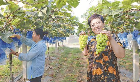 9月8日,博愛縣磨頭鎮(zhèn)獅口村葡萄產(chǎn)業(yè)園,游客在采摘葡萄。該葡萄產(chǎn)業(yè)園占地55畝,年產(chǎn)值可達(dá)200萬(wàn)元,年利潤(rùn)可達(dá)100萬(wàn)元,為50余名村民提供了務(wù)工崗位。