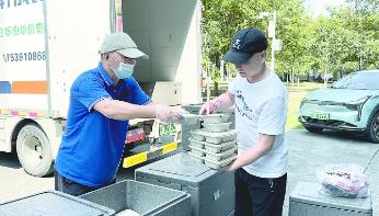 為“一賽一節(jié)”開幕式工作人員分發(fā)午餐。