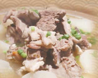很多人都不敢嘗試羊肉,因?yàn)榕卵蛉庥行任。其?shí),只要選好食材,掌握一些烹飪技巧,就可以做出軟爛無(wú)腥的羊肉。這道養(yǎng)生美食中的羊肉,是精選優(yōu)質(zhì)的黃河灘羊。制作時(shí),先將羊肉切小塊,白蘿卜切成滾刀塊,用秘制方式將羊肉去腥。鍋中燒水,將羊肉焯水后撈出備用;鍋中加水,放入白蘿卜、胡椒等,中小火燜至酥爛透香,最后再撒上蔥花。做好的砂鍋羊肉不但香氣四溢,而且口感軟嫩、溫潤(rùn)。羊肉的鮮美混合著白蘿卜的清香,吃上一口,會(huì)讓你有一種說(shuō)不出的滿足感。
