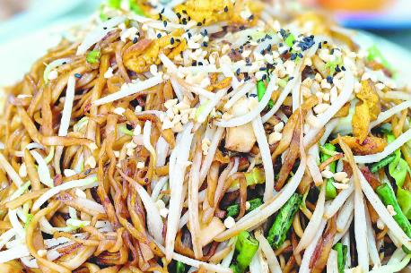 再說店里的炒面,只見那鍋和勺在廚師手里上下翻飛,熱油中爆起雞蛋的香氣,然后放入蔥、姜、蒜、豆角和豆芽。鍋里的面起起落落,勺在調(diào)味盒內(nèi)輕點,料隨勺起撒進鍋里,頓時芳香四溢。最后撒上一些花生碎,一盤炒面在行云流水中上了餐桌。他家的炒面鮮香味美,口感十足。雖然是炒的,但是一點兒不油膩,味道咸淡適中,嚼勁十足,且有雞蛋的香味。豆角的清爽和豆芽的清脆融合在一起,給炒面增添了不少風(fēng)味,讓整份炒面味道更好。