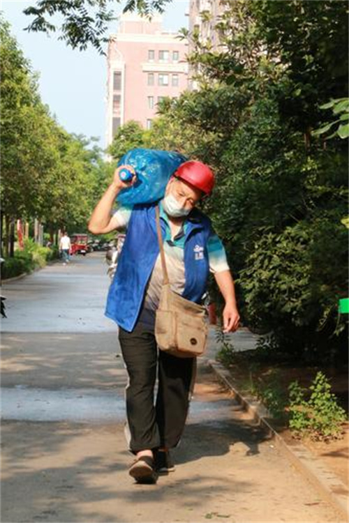 “這個小區(qū)有電梯,相對輕松一些。”李東方對記者說。他負責(zé)的區(qū)域是解放路以北的小區(qū),由于多是老舊小區(qū),很多住宅樓都沒有電梯。很多時候,他只能把桶裝水扛上樓。