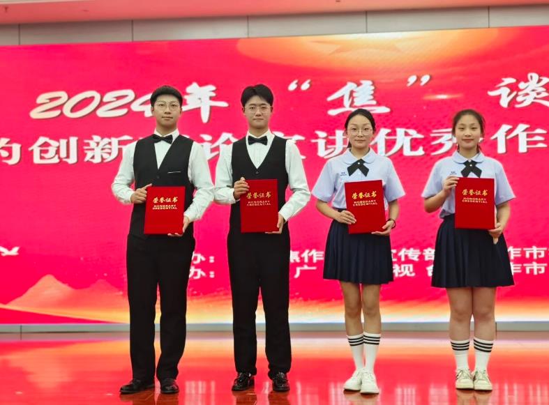 12月11日上午,沁陽市委宣傳部推送,高級(jí)中學(xué)快板節(jié)目《二十屆三中全會(huì)精神放光芒》,代表沁陽市參加2024年焦“談”有理——黨的創(chuàng)新理論宣講大賽。15支代表隊(duì)同臺(tái)競(jìng)技,經(jīng)過激烈的角逐,我校張銘、李依依、李鵬博、任應(yīng)惜四名同學(xué)獲得第六名的好成績(jī),榮獲二等獎(jiǎng)。這一榮譽(yù)的取得,不僅是對(duì)我校思政課教學(xué)實(shí)踐探索所做努力的認(rèn)可,也是對(duì)我校走特色發(fā)展之路辛勤付出的肯定。我校將以此為契機(jī),持續(xù)推進(jìn)多樣化特色發(fā)展建設(shè),努力創(chuàng)辦人民滿意的優(yōu)質(zhì)高中。