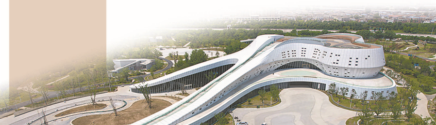 高空俯視,這座白色建筑猶如一個(gè)大如意,橫亙南北。據(jù)了解,該建筑造型流暢的線條有深意——來自成語“水到渠成”:外觀以水為形、以南水北調(diào)渠道為意。