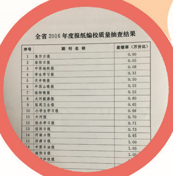 全省2016年度報(bào)紙編校質(zhì)量抽查結(jié)果揭曉,《焦作日?qǐng)?bào)》實(shí)現(xiàn)零差錯(cuò)。