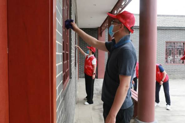 志愿者們組織清掃了場館衛(wèi)生。大家手持掃帚、抹布等清潔工具,認(rèn)真清理紙屑、煙頭,仔細(xì)擦拭門窗、玻璃,將紀(jì)念館內(nèi)外打掃的干干凈凈。在工作人員的指導(dǎo)下,幫助維護(hù)游覽秩序,講解文明旅游行為規(guī)范,發(fā)放文明旅游倡議書。
