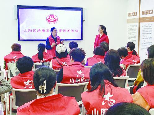 山陽(yáng)區(qū)婦聯(lián)工作人員為婦聯(lián)干部、巾幗志愿者講述清廉家風(fēng)故事。