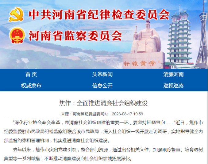 去年以來,焦作市突出黨建引領(lǐng),整合部門資源,通過出臺相關(guān)文件、加強跟蹤督查、培育選樹典型等一系列舉措,不斷推動清廉建設(shè)向社會組織領(lǐng)域拓展深化。