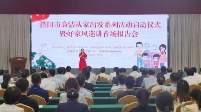 6月19日,河南省濮陽市“清廉家風(fēng)潤龍都”——廉潔從家出發(fā)系列活動啟動儀式暨好家風(fēng)巡講首場報告會舉行,圖為該市黨員干部在現(xiàn)場聆聽廉潔家風(fēng)故事。劉濮生 攝