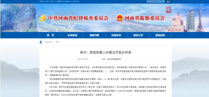 “我們根據(jù)家訪情況填寫紀檢監(jiān)察干部家訪情況記錄表,形成‘一人一檔’家訪臺賬,對家訪中發(fā)現(xiàn)的苗頭性問題及時予以提醒糾正,并梳理匯總意見建議。”該市紀委監(jiān)委干部監(jiān)督室負責人王強介紹道。今年以來,焦作市紀委監(jiān)委把廉潔家訪作為了解干部、監(jiān)督干部的有效抓手,深入紀檢監(jiān)察干部家庭,向家屬介紹紀檢監(jiān)察隊伍建設情況,認真傾聽家屬的意見建議,全方位、多層面了解干部思想狀況、生活作風和“八小時以外”的表現(xiàn),督促紀檢監(jiān)察干部帶頭做家風建設的表率。截至目前,已對100名紀檢監(jiān)察干部開展廉潔家訪,收集意見建議24條。“我承諾自覺遵守廉潔自律有關規(guī)定,樹立‘以德立家、以儉持家、以廉保家’的良好家風……”前不久,在焦作市紀委監(jiān)委舉辦的家庭助廉座談會上,紀檢監(jiān)察干部家屬代表宣讀了家庭助廉承諾書,并鄭重簽下自己的名字,交到工作人員手中。為充分發(fā)揮家庭助廉作用,從嚴從實加強對紀檢監(jiān)察干部的監(jiān)督管理,該市紀委監(jiān)委在開展廉潔家訪的同時,向全體紀檢監(jiān)察干部及家屬推出“廉潔套餐”,通過簽訂家庭助廉承諾書、發(fā)送廉潔短信、觀看警示教育片、發(fā)放典型案例匯編等活動,引導紀檢監(jiān)察干部把家風建設作為必修課、常修課,廉潔修身、廉潔齊家。“下一步,我們將進一步凝聚‘組織+家庭’監(jiān)督合力,采取更豐富、更有效的方式方法,積極開展家庭助廉活動,以廉潔家風涵養(yǎng)清風正氣!痹撌屑o委監(jiān)委相關負責人說。