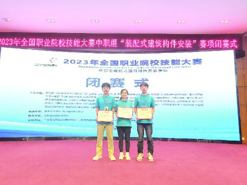 好事成雙。該校老師祁振悅與學(xué)生趙書玉、王志山獲得全國職業(yè)院校技能大賽中職“裝配式建筑構(gòu)建安裝”師生同賽賽項二等獎。比賽除了理論知識考察外,側(cè)重預(yù)制構(gòu)件吊裝、預(yù)制構(gòu)建灌漿兩個技能操作,主要考察選手施工現(xiàn)場定位放線、裝配式建筑構(gòu)建吊裝等知識,對團(tuán)隊合作能力、質(zhì)量意識、安全意識、職業(yè)素養(yǎng)均有較高要求。
